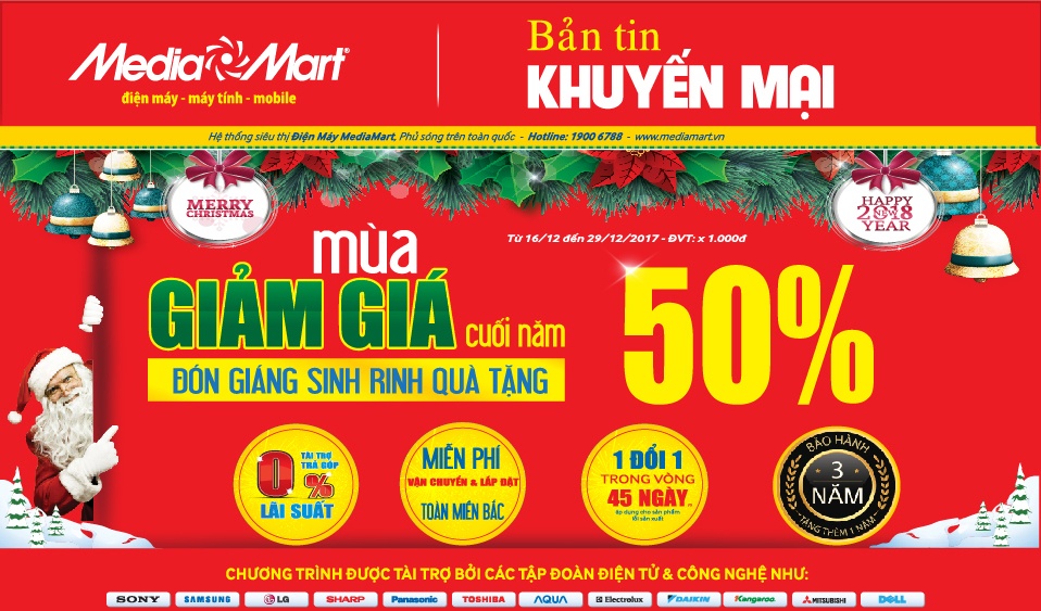 Cuối năm là thời điểm thị trường điện máy sôi động hơn bao giờ hết. Đây cũng là lúc người tiêu dùng chi tiêu mạnh tay nhất sau cả một năm lao động miệt mài. Nắm bắt được quy luật đó, MediaMart tung bom tấn khuyến mại đón giáng sinh với hơn 30.000 mặt hàng điện tử, điện lạnh, máy tính, mobile giá cực rẻ với hàng ngàn quà tặng hấp dẫn.