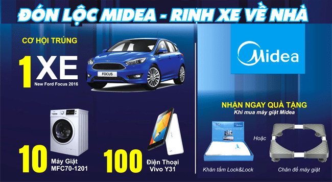 Từ 15/11/2016 – 20/01/2017, Mediamart cùng Midea thực hiện CT "Đón lộc Midea – Rinh xe về nhà". Theo đó trong thời gian diễn ra CTKM, khi mua sản phẩm máy giặt Midea chính hãng tại Thế giới điện máy Mediamart, khách hàng sẽ có cơ hội trúng Xe hơi Ford New Focus 2016, 10 máy giặt lồng ngang và 100 smartphone Vivo.