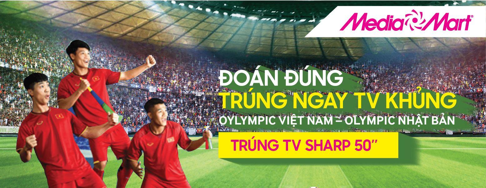Đồng hành cùng các cầu thủ, đồng hành cùng người hâm mộ bóng đá Việt nam, hệ thống thế giới điện máy MediaMart đem tới chương trình ĐOÁN KẾT QUẢ OYLYMPIC VIỆT NAM – OLYMPIC NHẬT BẢN – TRÚNG TV SHARP 50’’ tại fanpage https://www.facebook.com/xoilacchamtv/ và fanpage MediaMart https://www.facebook.com/DienmayMediaMart/