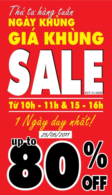Vào ngày 25/05/2011, tức thứ Tư tới đây, tại Thế giới điện máy Media Mart, sẽ có các sản phẩm Gia dụng, phụ kiện máy tính, di động,… được giảm giá đến 49%. Chương trình khuyến mại chỉ được áp dụng duy nhất tại 04 đại siêu thị của Media Mart: Media Mart 1 (29F Hai Bà Trưng), Media Mart 2 (56 Nguyễn Chí Thanh), Media Star 3 (Km10 Nguyễn Trãi, Thanh Xuân) và Media Star 4 (72 Trường Chinh).