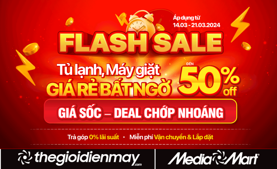 Việc sở hữu một chiếc tủ lạnh hiện đại hay một chiếc máy giặt chất lượng cao chưa bao giờ dễ dàng đến thế. Trong khuôn khổ chương trình Flash Sale đặc biệt, MediaMart mang đến cho khách hàng cơ hội mua sắm các sản phẩm Tủ lạnh, Máy giặt đến từ những thương hiệu uy tín với mức ưu đãi lên đến 44%. Đây là dịp hiếm có để bạn nâng cấp không gian sống với những thiết bị gia dụng thông minh, tiện ích mà vẫn đảm bảo ngân sách hợp lý.