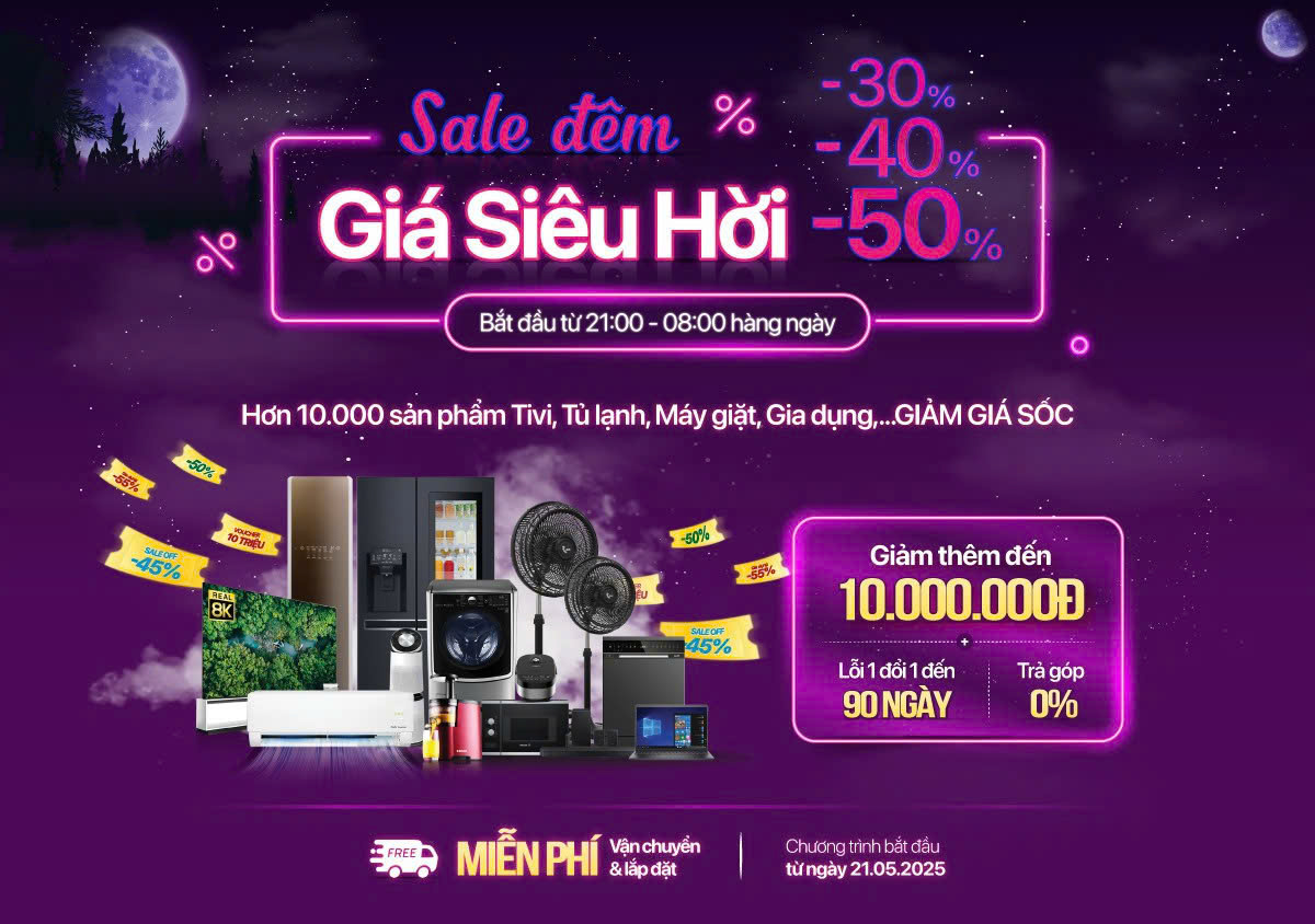 Có ai nói cho bạn biết rằng đừng ngủ… khi deal sale còn “thức” chưa? Chương trình săn sale đêm khuya đã trở lại MediaMart từ 21/05 - 31/05/2025, trong thời gian từ 21h - 8h hằng ngày. Đây là cơ hội để các “cú đêm” có thể thoải mái shopping thật tiết kiệm với mức ưu đãi “kịch sàn” lên đến 50%++ cho các sản phẩm như tivi, tủ lạnh, máy giặt, đồ gia dụng… Còn chần chờ gì nữa, sẵn sàng shopping ngay thôi!