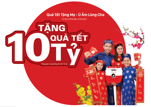 - Từ 18/11-27/1/2017: "Tặng quà Tết 10 tỷ khi mua Gia dụng Sunhouse", Mua 1 tặng 1, tổng giá trị quà tặng lên đến 10 tỷ đồng: