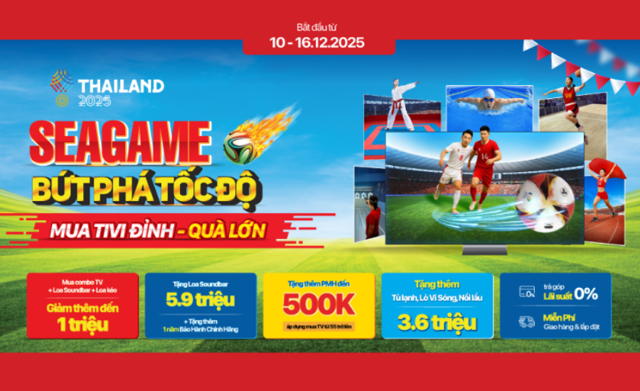 Cụ thể: Quý khách hàng sắm smart tivi từ 43-50inch tặng vỉ nướng trị giá 690.000đ, lì xì phiếu mua hàng đến 3 triệu đồng, tặng bộ quà trị giá 1.490.000đ...; sắm smart tivi 4K từ 43-50inch tặng lò vi sóng trị giá 1.990.000đ, lì xì phiếu mua hàng đến 3 triệu đồng, tặng bộ quà trị giá 1.490.000đ; sắm smart tivi 4K 55inch giá từ 15 triệu, tặng tivi LED 32inch trị giá 4.990.000đ, lì xì thêm tiền mặt từ 500.000đ-3 triệu đồng, giảm thêm 10% cho tivi từ 65inch trở lên, giảm thêm 50% cho loa soundbar, tặng bộ quà trị giá 1.490.000đ...