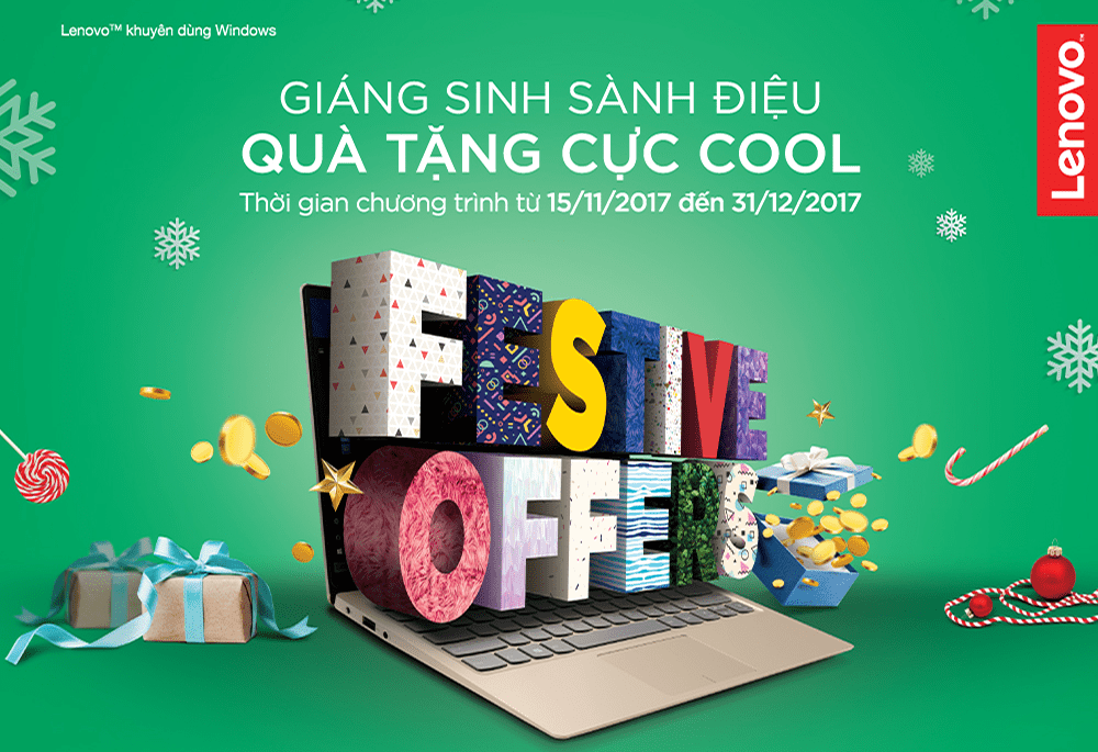 Chào đón Giáng Sinh 2017 , Công ty CP Mediamart & Lenovo Việt Nam triển khai chương trình “GIÁNG SINH SÀNH ĐIỆU, QUÀ TẶNG CỰC COOL” dành cho các dòng sản phẩm máy tính xách tay Lenovo với nội dung như sau