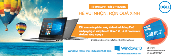 6. Hình thức khuyến mãi: Khi khách hàng mua sản phẩm máy tính Dell chính hãng thuộc các dòng sản phẩm XPS, Inspiron & Vostro có sử dụng bộ vi xử lý Intel® Core™ i3 Processors, Intel® Core™ i5 Processors, Intel® Core™ i7 Processors trong thời gian khuyến mãi sẽ được tặng: 01 (một) thẻ cào Mobifone trị giá 300.000đ.