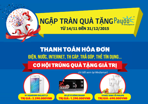 Vào hồi 17h00 ngày 24/11/2015, tại Media Mart 29F Hai Bà Trưng - Hoàn Kiếm - Hà Nội, Công ty CP Media Mart Việt Nam & Công ty CP Dịch vụ trực tuyến Viet Union (Payoo) đã tổ chức lễ quay số may mắn chương trình “Thanh toán Bill Nghìn quà tặng cùng Payoo tại Mediamart" để tìm ra những khách hàng may mắn trúng 15 Giải tuần (10 Máy xay sinh tố Philips & 05 Lò vi sóng Sharp cao cấp) và 01 Giải đặc biệt là 01 chiếc Điện thoại Samsung Galaxy J1.