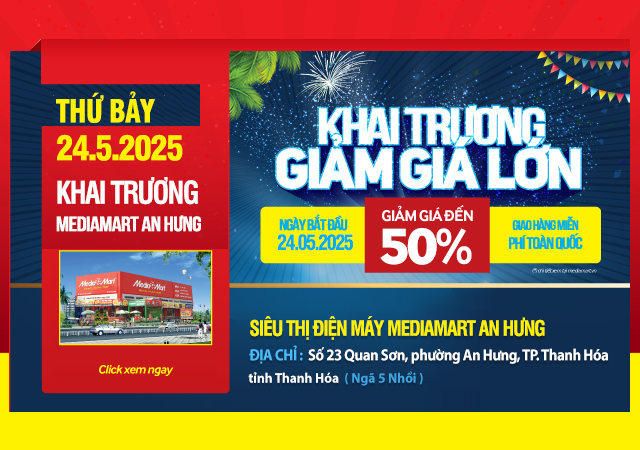 Thứ 7, 24/5 khai trương MediaMart An Hưng, Thanh Hóa: 10 ngày giá sốc, cơn lốc quà tặng (-50%)