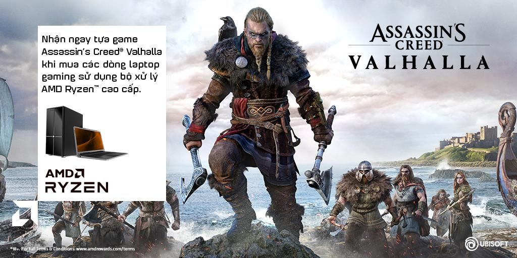 Khách hàng khi mua laptop sử dụng các bộ xử lý Ryzen 7 4800H / 4800HS hoặc Ryzen 9 4900H / 4900HS sẽ có cơ hội sở hữu tựa game Assassin’s Creed Valhalla cực đỉnh, sẽ ra mắt vào thời gian tới.