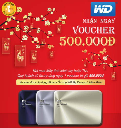 Nhằm gia tăng tối đa các tiện ích dành cho các khách hàng, theo đó từ 07/3 - 13/3/2015 Media Mart phối hợp cùng thương hiệu sản xuất ổ cứng số 1 thế giới là WD thực hiện chương trình khuyến mại tặng Voucher trị giá 500.000đ để mua ổ cứng gắn ngoài WD My Passport Ultra Metal cho các khách hàng khi mua Tivi / Laptop.