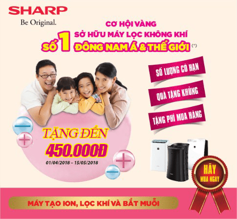 Nhân dịp kỷ niệm ngày giải phóng miền Nam 30/4 và Quốc Tế Lao Động 1/5, nhằm tri ân khách hàng, siêu thị điện máy MediaMart phối hợp với hãng Sharp thực hiện chương trình khuyến mại tặng quà hấp dẫn cho khách hàng mua máy lọc không khí.