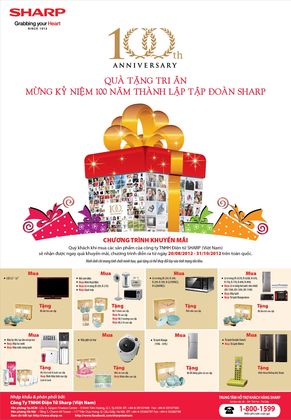 Đón chào sự kiện kỷ niệm 100 năm thành lập tập đoàn Sharp đồng thời tri ân khách hàng đã đồng hành và gắn bó trong suốt thời gian qua, Media Mart trân trọng gửi tới quý khách chương trình khuyến mại hấp dẫn, quà tặng hàng loạt.