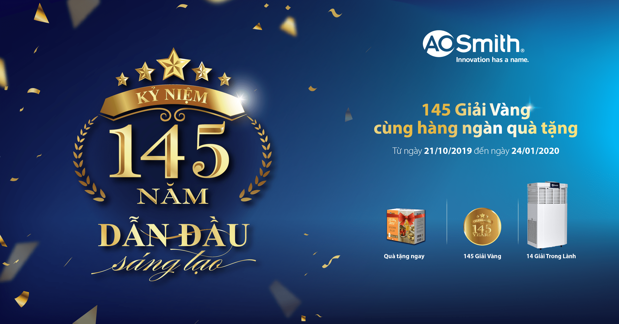 145 Giải Vàng: Mỗi giải 01 logo A. O. Smith bằng vàng SJC 9999 trị giá 4,600,000Đ