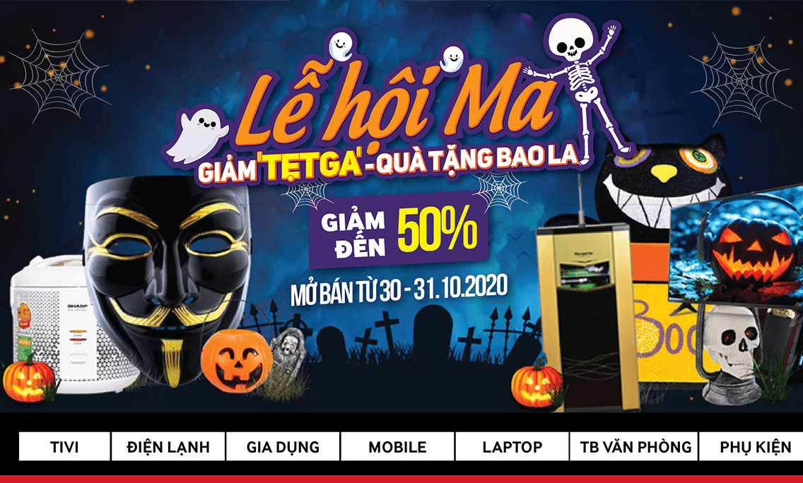 Hòa mình vào không khí mùa lễ hội HALOWEEN, MediaMart tưng bừng khuyến mại với chương trình “LỄ HỘI MA - GIẢM GIÁ HẾT GA, QUÀ TẶNG BAO LA, SALE 50%” áp dụng trên toàn hệ thống siêu thị MediaMart trên toàn quốc trong 2 ngày 30/10 & 31/10.