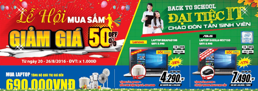Chào đón tân sinh viên, MediaMart mang đến chương trình “Đại tiệc IT” với nhiều ưu đãi lớn dành cho các sản phẩm công nghệ như: mua laptop tài trợ giảm trực tiếp đến 2 triệu và tặng thêm bộ quà trị giá 690.000đ, mua smartphone tặng đồ gia dụng giá trị.