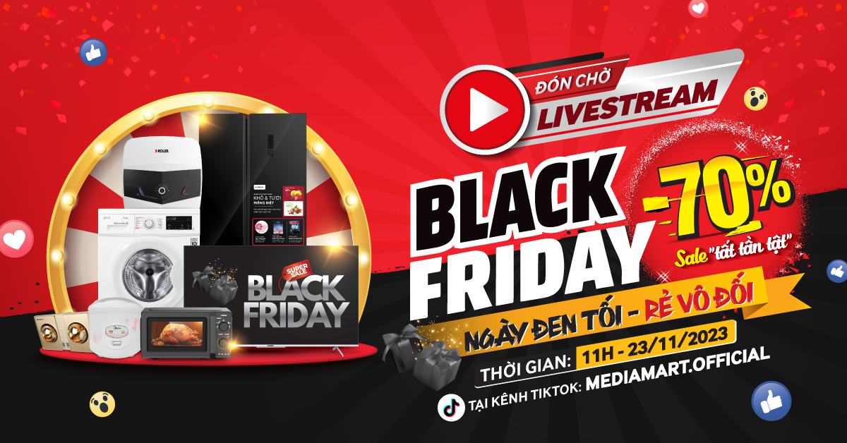 Tin nóng đây! Nhanh tay săn sale Black Friday cùng MediaMart trong Livestream Bán hàng GIÁ SỐC “Black Friday - Ngày đen tối, rẻ vô đối - 70%” tại https://www.tiktok.com/@mediamart.official?lang=vi-VN. Cơ hội có 1-0-2 để quý khách hàng săn sale khủng các sản phẩm điện tử, gia dụng, công nghệ với mức giá rẻ chưa từng có. Còn gì tuyệt vời hơn !