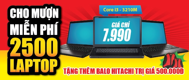 Theo đó, diễn ra từ 10/8-31/10/2013, 2,500 bạn trẻ sẽ được dùng thử hoàn toàn miễn phí sản phẩm Laptop Lenovo G480(59-366864) i3-3120M/2GB/500GB/14" , lại được tặng thêm 01 balo Hitachi trị giá 500.000đ.