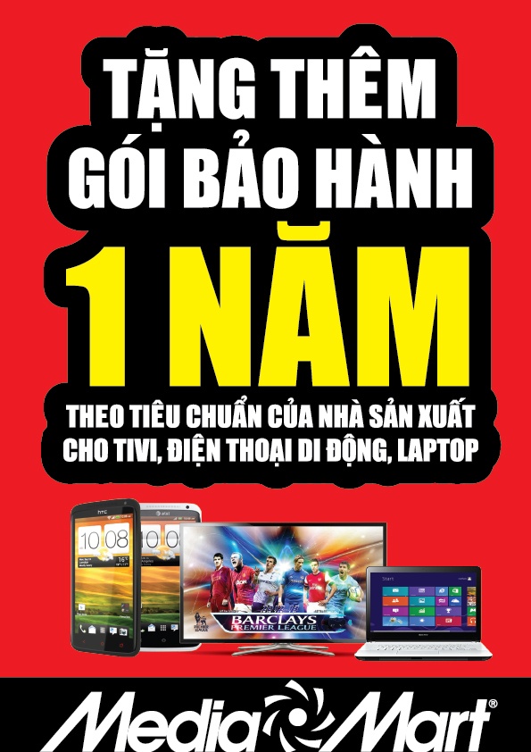 Từ ngày 27/09/2013, Hệ thống thế giới điện máy Media Mart triển khai khai  tặng Gói bảo hiểm vàng cho hàng loạt sản phẩm TV LED, smartphone, laptop…