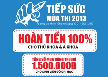 Tiếp sức mùa thi 2013, Từ 5/7 đến 20/7/2013, tất cả thí sinh của kỳ thi Đại học 2013 khi mua laptop tại các trung tâm thuộc hệ thống thế giới điện máy Media Mart đều có cơ hội được nhận 1 trong 3 ưu đãi vàng: