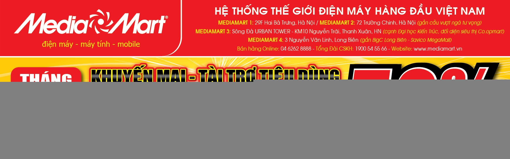Chi tiết xem tại website www.mediamart.vn hoặc liên hệ tổng đài chăm sóc khách hàng 1900 6741 và tổng đài bán hàng qua điện thoại 1900 6788.