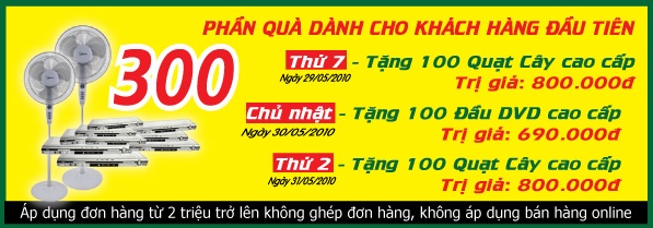 Thứ bảy, ngày 29/05/2010 giành tặng 100 quạt cây cao cấp trị giá 800.000 đồng.