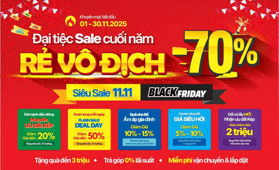Không chỉ có vậy, thời điểm này mua điều hoà còn được tặng thêm 6 ưu đãi khủng lên đến 7 triệu, đồng loạt giảm giá đến 3 triệu, tặng gói vật tư công lắp đến 1,3 triệu, tặng Evoucher gia dụng lên đến 10 triệu, đổi cũ lấy mới giá thu hồi lên đến 2 triệu, bảo hành 1 đổi 1 trong vòng 90 ngày, trả  trước 0 đồng lãi suất 0%.
