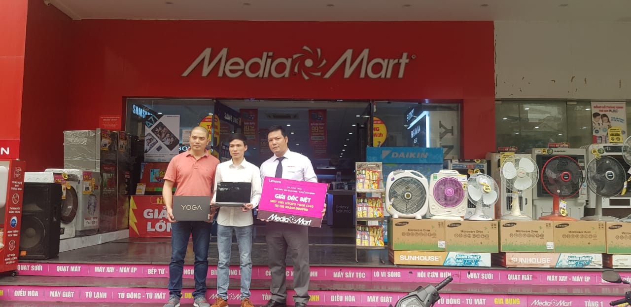 Sáng thứ 6, ngày 13/3/2020, tại MediaMart Cầu Giấy - Số 335 Cầu Giấy, Phường Dịch Vọng, Quận Cầu Giấy, Hà Nội, MediaMart phối hợp cùng Lenovo tiến hành trao thưởng cho khách hàng trúng giải đặc biệt trong chương trình “Mua máy xịn quà xinh, vui lễ linh đình” dưới sự giám sát của Sở công thương Thành phố.