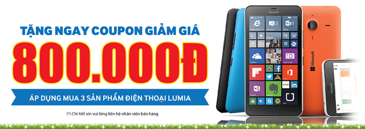 Coupon quay lại được ưu đãi chiết khấu giảm giá: Giảm giá 500.000 VNĐ – 800.000 VNĐ cho 3 Model Nokia Lumia