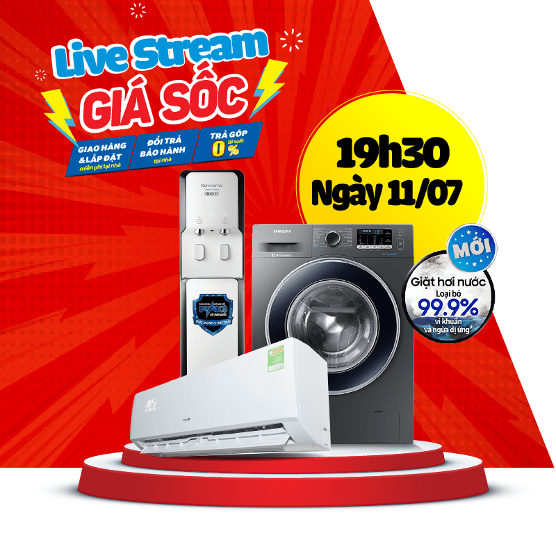 Trong buổi phát sóng hôm nay lúc 19h30, ngày 11/07 quý khách hàng sẽ được mua các sản phẩm điều hòa, laptop, tủ lạnh ….với mức giảm giá lên tới 70% cùng nhiều phần quà hấp dẫn khác có trong livestream