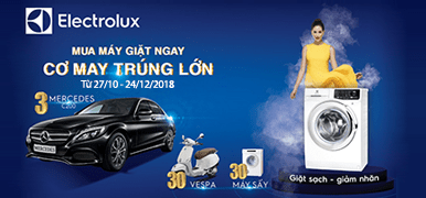Với mục đích kích cầu mua sắm, gia tăng giá trị cho người tiêu dùng mua sắm trong tháng khuyến mại Hà Nội 2018 & trong mùa mua sắm cuối năm, MediaMart phối hợp cùng Electrolux Việt Nam đồng thực hiện chương trình khuyến mại “Mua máy giặt ngay – Cơ may trúng lớn” diễn ra từ 27/10 - 24/12/2018., khi mua máy giặt Electrolux khách hàng sẽ có cơ hội trúng xe hơi Mercedes...