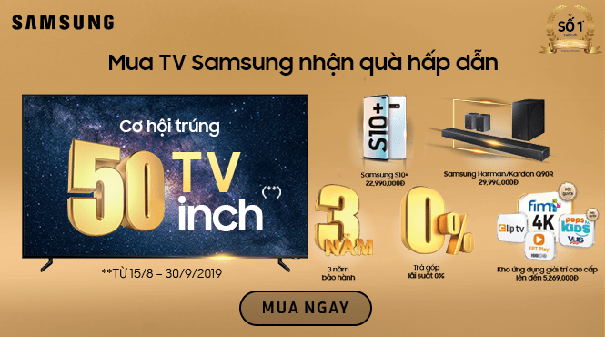 Nhân sự kiện sinh nhật 50 năm, Samsung cùng MEDIAMART mang đến sự tri ân khách hàng bằng hàng ngàn chương trình Khuyến mãi cực kì hấp dẫn khi Mua Tivi Samsung tại tất cả các Siêu thị điện máy MediaMart trên toàn quốc. Đặc biệt hơn, từ ngày 15/8 - 30/9/2019, khi khách hàng Mua TV Samsung Còn có cơ hội trúng ngay 50 Smart TV 50 inch.