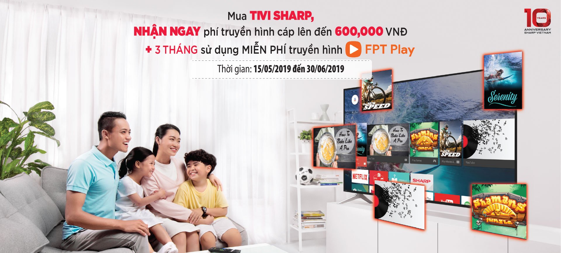 Từ ngày 15/5/2019 đến hết 30/6/2019 Mua Tivi Sharp tại MediaMart Tặng ngay phí truyền hình cáp đến 600.000đ.