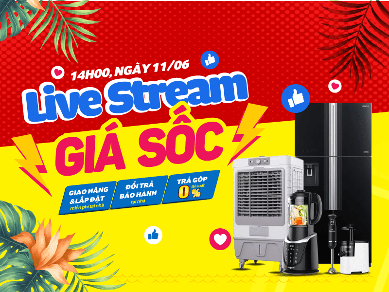 Trong buổi phát sóng hôm nay lúc 14h00, 11/06 quý khách hàng sẽ được mua các sản phẩm quạt điều hòa, máy làm sữa, máy ép trái cây…với mức giảm giá lên tới 40% cùng nhiều phần quà hấp dẫn khác có trong livestream