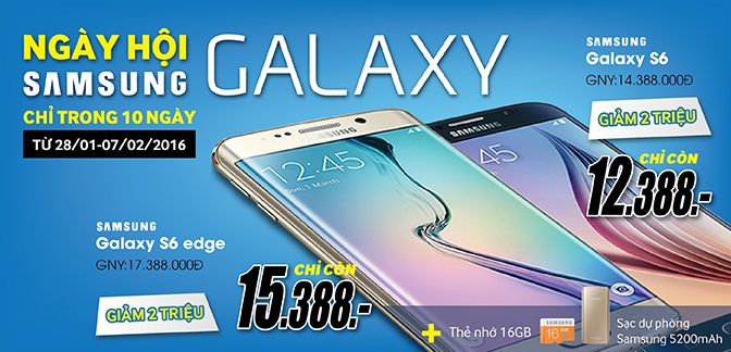 Từ 28/1- 07/2/2016, Siêu thị điện máy Mediamart và Samsung Vietnam tổ chức chương trình khuyến mãi cực kỳ hấp dẫn: Ngày hội Samsung Galaxy áp dụng cho tất cả khách hàng đến MUA TRỰC TIẾP tại tất cả các Siêu thị điện máy Mediamart trên toàn quốc với Mức giảm giá lên đến 2.000.000đ