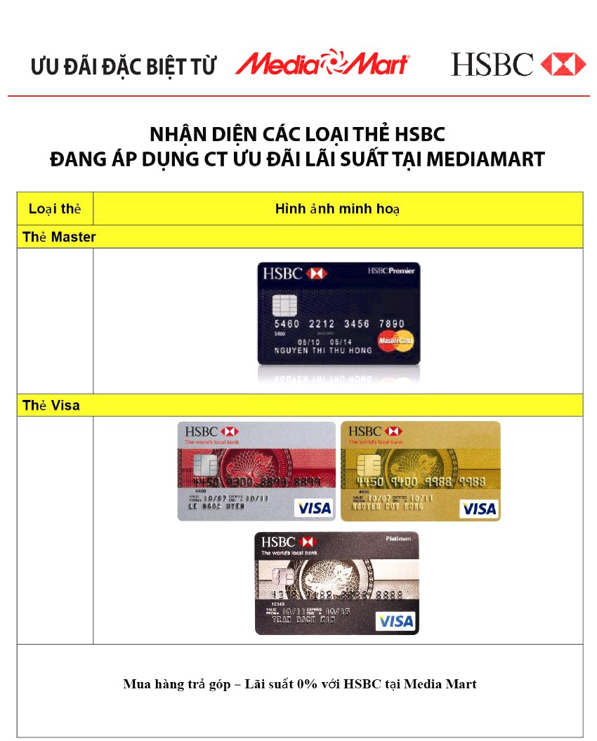 • 1. Nhận diện các loại thẻ HSBC áp dụng chương trình ưu đãi Trả góp không lãi tại Media Mart