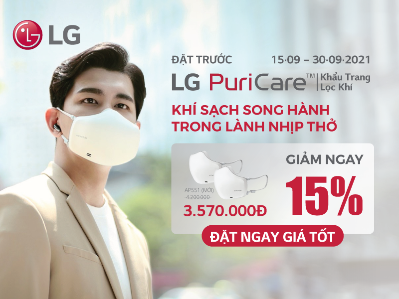 Theo đó, khách hàng có thể lựa chọn đặt hàng tại chương trình “Đặt trước khẩu trang lọc khí LG thế hệ thứ 2” từ ngày 15.09 đến hết ngày 30.09, ngoài việc được mua với mức khuyến mại, khách hàng còn được nhận thêm nhiều ưu đãi như: Tặng quyền mua sản phẩm giá cực sốc (Áp dụng: 01/06/2021 - 30/09/2021); trả trước 0đ - lãi suất 0% cho đơn hàng gia dụng từ 3,000,000đ đến 16,000,000đ (Không áp dụng sản phẩm Giá sốc, Giá Ngày vàng)...