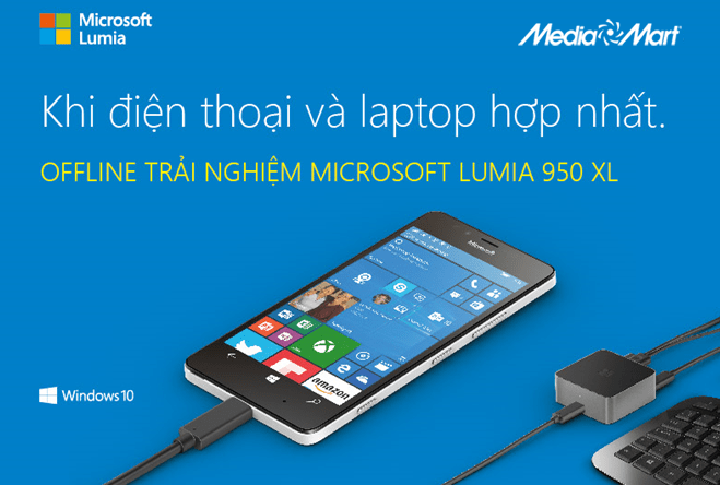 Nhằm giúp cho khách hàng và những người yêu công nghệ có điều kiện tiếp cận cũng như có cái nhìn tường tận hơn nữa về Siêu phẩm Lumia 950 XL vừa ra mắt cũng như hệ điều hành Windows Phone 10 mới nhất, vào 9h30 AM - Thứ Bảy - Ngày 16/1/2015, tại Mediamart Mỹ Đình (Tòa nhà B.I.G TOWER - Số 18 Phạm Hùng (Cách cầu vượt Mai Dịch 100m), Microsoft Việt Nam và Siêu thị điện máy MediaMart sẽ phối hợp tổ chức buổi Offline chia sẻ kinh nghiệm về sản phẩm này.