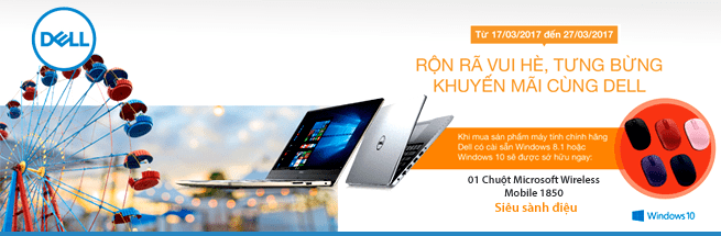 - Mua bất kỳ Laptop Dell XPS, Inspiron & Vostro có cài sẵn Windows 8.1 hoặc Windows 10 bản quyền tại Mediamart khu vực Hà Nội được sở hữu ngay  01 (một) Chuột Microsoft Wireless Mobile 1850 Siêu sành điệu.