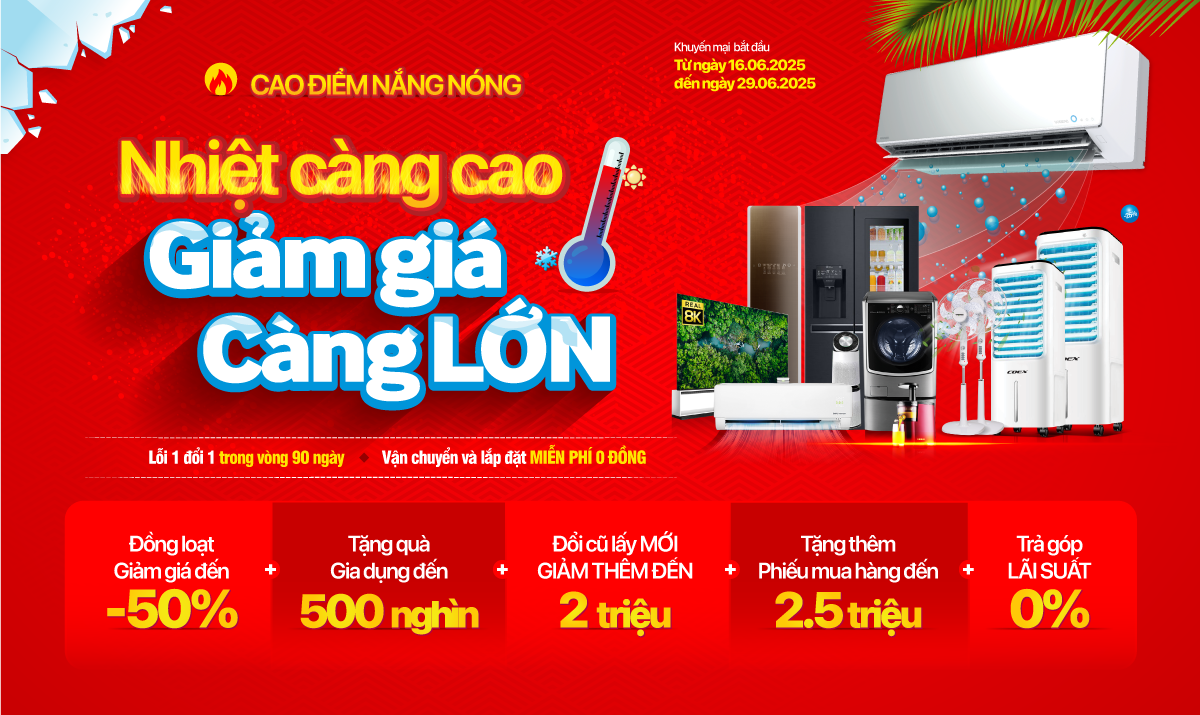 MediaMart thấu hiểu nhu cầu và những khó khăn của nhiều khách hàng nên đã mang đến cho bạn một chương trình ưu đãi đặc biệt, GIẢM LỚN ĐẾN 50% giúp bạn “giải nhiệt” nắng nóng nhanh chóng mà không cần lo lắng quá nhiều về chi phí, đồng thời còn nhận nhiều quà tặng hấp dẫn như: