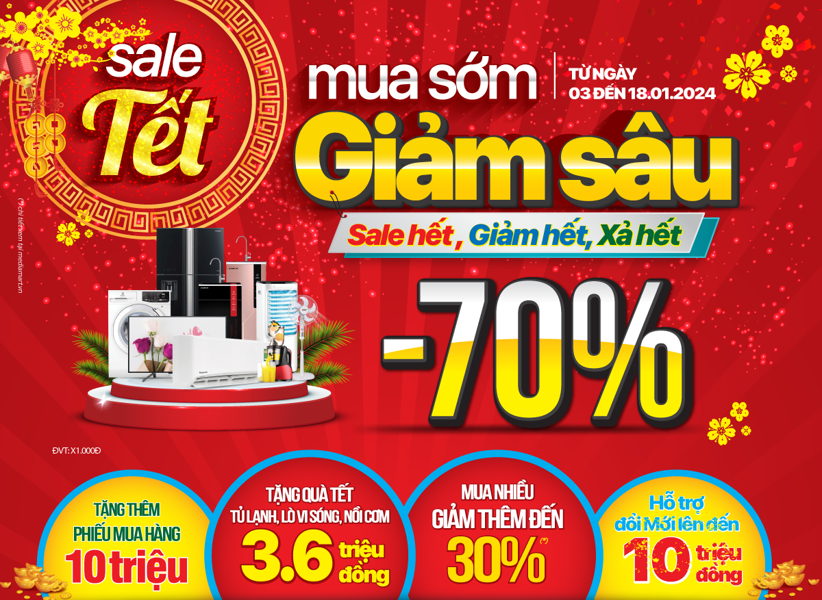 Sale Tết, Mua sớm giảm sâu- Ưu đãi rộn ràng tới 70% toàn bộ sản phẩm