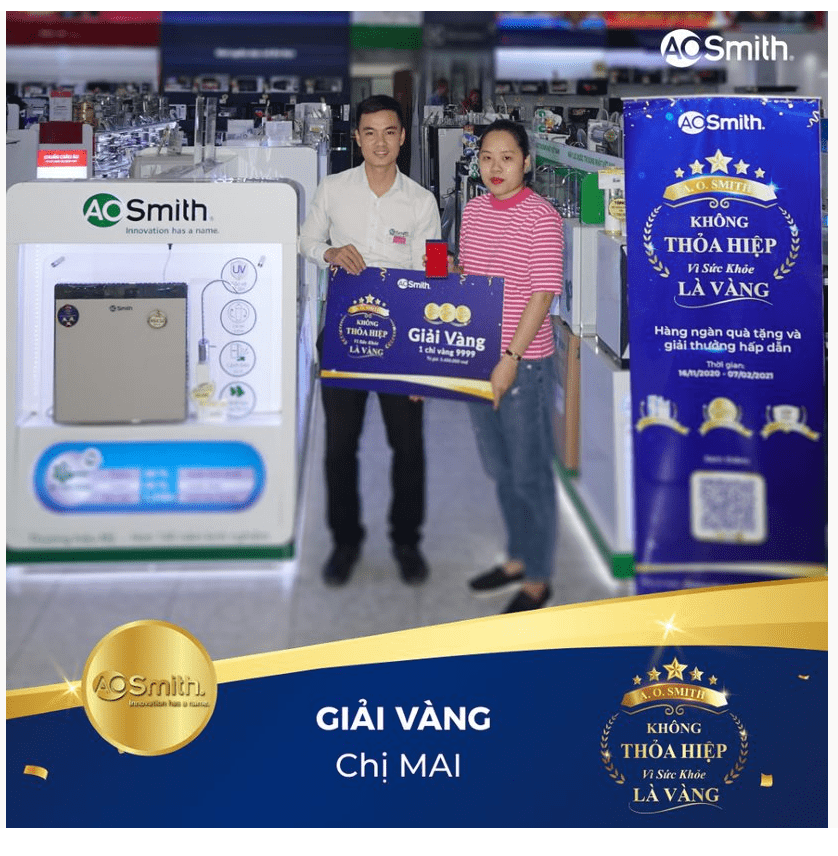 Với mong muốn mang đến sự may mắn cùng những giải pháp hiện đại, tiện nghi nhất để bảo vệ sức khỏe gia đình bạn, A. O. Smith đã khởi động chương trình hấp dẫn nhất từ trước tới nay A. O. Smith mang đến chương trình  "KHÔNG THỎA HIỆP VÌ SỨC KHỎE LÀ VÀNG" với những giải thưởng vô cùng giá trị: