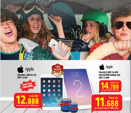 Media Mart cũng là hệ thống siêu thị Điện máy đầu tiên tại Việt Nam được kinh doanh theo chuẩn chung về trưng bày Apple iCorner dựa trên tiêu chuẩn của mô hình bán lẻ của Apple trên phạm vi toàn cầu. Mua sắm các sản phẩm Ipad Air 2 cũng như iPad mini 3 mới nhất chính hãng tại Media Mart khách hàng sẽ được nhận 4 Ưu đãi cực lớn: Trả góp 0% lãi suất, Tặng thêm miếng dán màn hình cao cấp, Tặng thêm gói 3 ưu đãi trị giá 1,200,000đ, Tặng thêm Phiếu giảm giá 30% khi mua Phụ kiện.