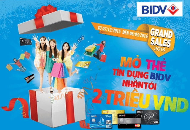 Từ ngày 7/12/2015 - 06/03/2016, Khách hàng phát hành mới thẻ BIDV và mua sắm điện máy, máy tính, điện thoại tại Hệ thống siêu thị điện máy Mediamart sẽ được ưu đãi tặng tiền tới 2 triệu VND, cụ thể như sau: