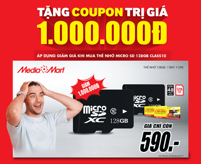 Hưởng ứng tháng Hành động vì Quyền người tiêu dùng, Công ty CP Mediamart Việt Nam thực hiện chương trình Tri ân khách hàng tặng ngay Coupon giảm giá 1.000.000VNĐ dùng để mua thẻ nhớ 128GB cao cấp cực hữu ích.