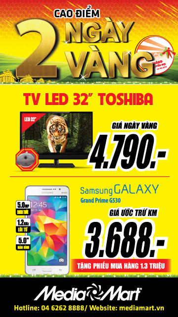 - Samsung Galaxy Grand Prime giá ngày vàng chỉ 3.688.000đ tại MediaMart Long Biên và MediaMart Hải Phòng