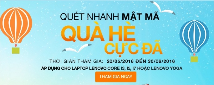 Nhằm gửi lời tri ân đến quý khách hàng, từ ngày 20/5 - 30/6/2016, Công ty CP Mediamart Việt Nam & Lenovo Việt Nam đồng tổ chức chương trình khuyến mãi hấp dẫn trong mùa hè này với những giải thưởng hấp dẫn hằng tuần và giải chung cuộc một chiếc máy tính Lenovo YOGA 900 trị giá 33.999.000đ .