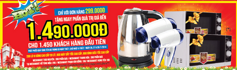 - Với đơn hàng từ 299.000đ khách hàng nhận được ngay bình siêu tốc hay máy sấy tóc trị giá 89.000đ