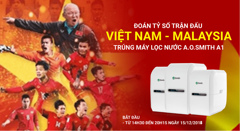 Đồng hành cùng các cầu thủ, đồng hành cùng người hâm mộ bóng đá Việt nam, hệ thống siêu thị điện máy MediaMart đem tới minigame “DỰ ĐOÁN TỶ SỐ TRẬN ĐẤU VIỆT NAM – MALAYSIA - TRÚNG MÁY LỌC NƯỚC A. O. Smith A1 TRỊ GIÁ 11.000.000đ” tại fanpage của hệ thống siêu thị điện máy MediaMart (https://fb.com/DienmayMediaMart/) vào lúc 14h30 ngày 15/12/2018.