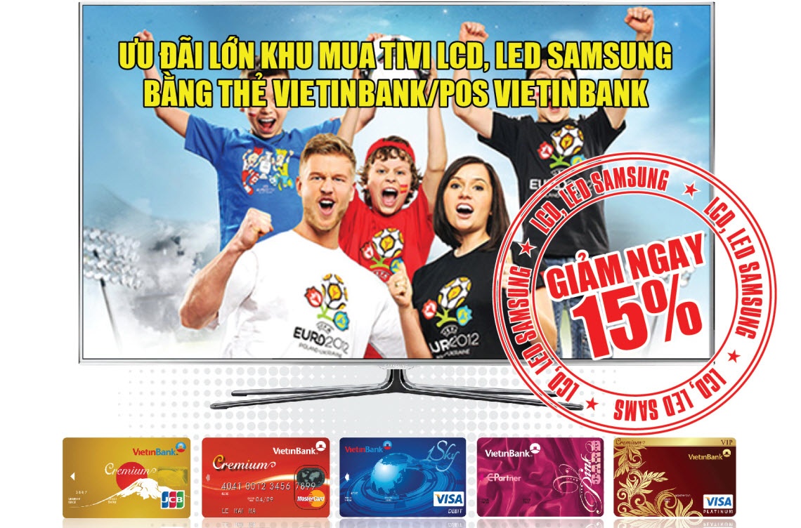 Đón chào Euro 2012, VietinBank giảm đến 15% cho chủ thẻ VietinBank khi mua TIVI SAMSUNG và thanh toán bằng thẻ VietinBank/ POS VietinBank tại hệ thống Siêu thị Điện máy MediaMart, chi tiết Chương trình này như sau: