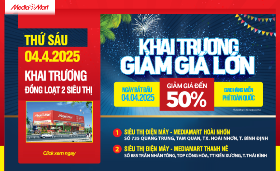 Thứ 6, 04/4 Khai trương MediaMart Thanh Nê, Thái Bình: 10 ngày giá Sốc, Cơn lốc quà tặng (-50%++)